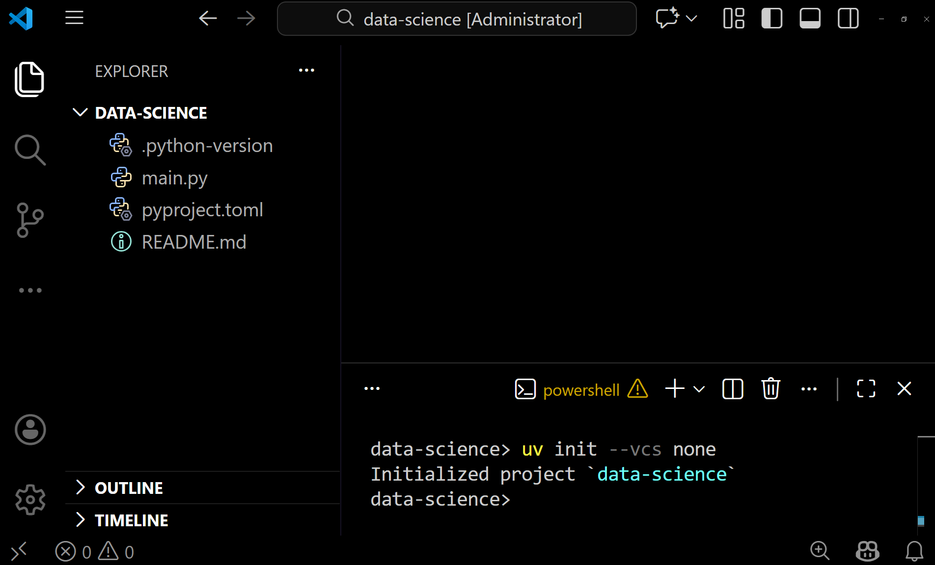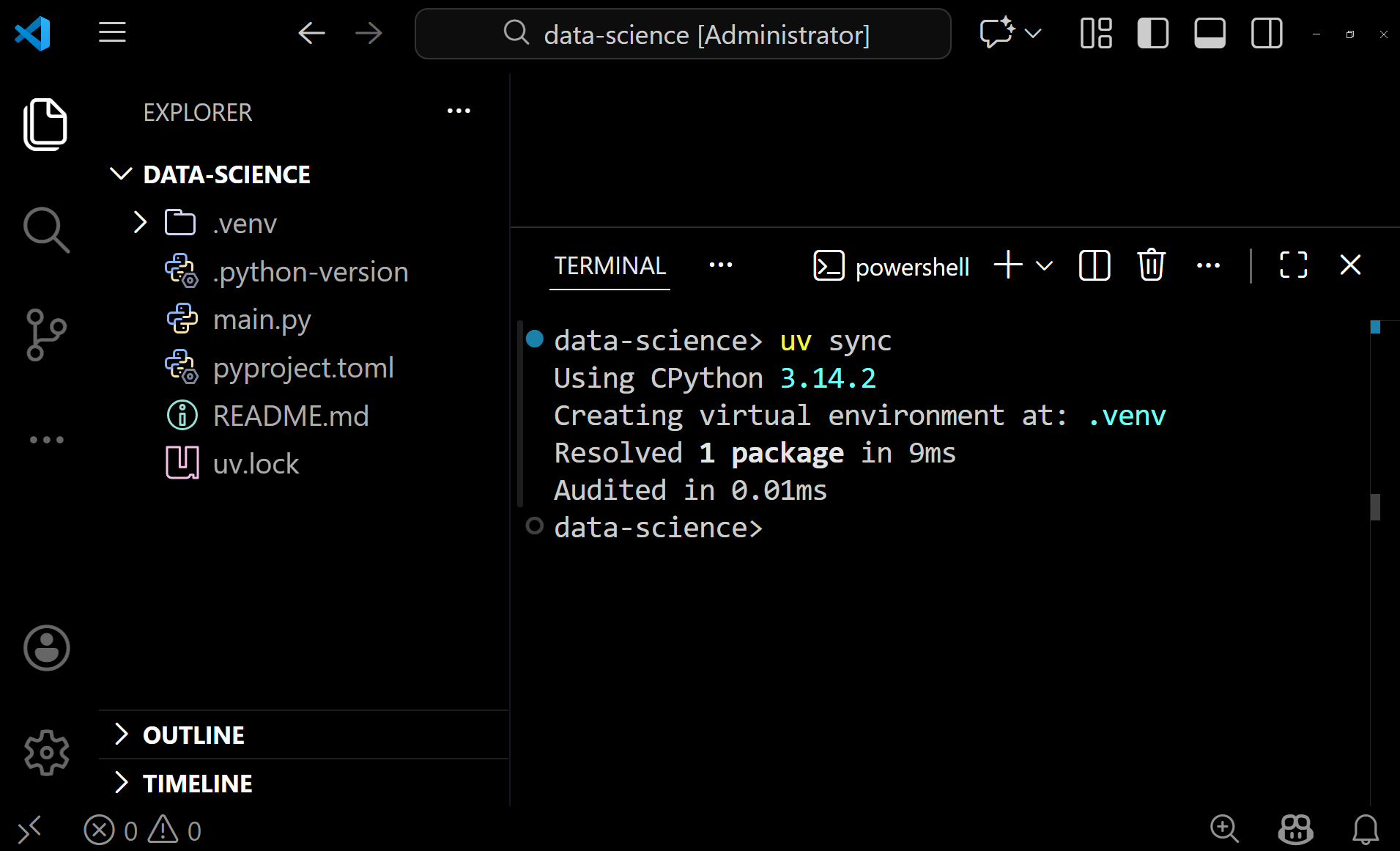 Open VS Code. Go to File → Open Folder…, select the data-science folder. VS